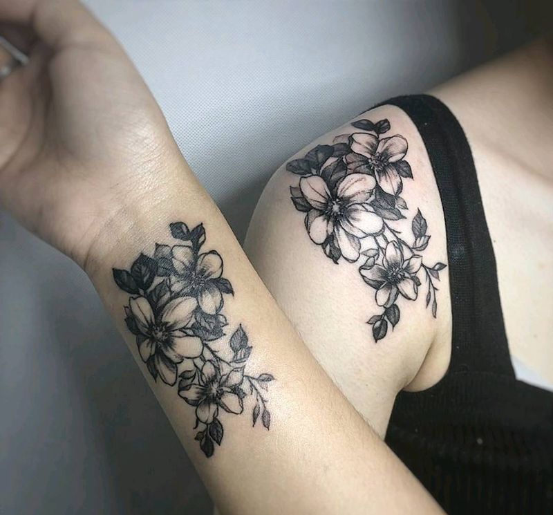 当前位置: 首页 >辽宁省沈阳市纹身店-天刺烙印纹身图案>闺蜜同款素花纹身图片_肩部手臂新传统花素花小清新纹身图案
