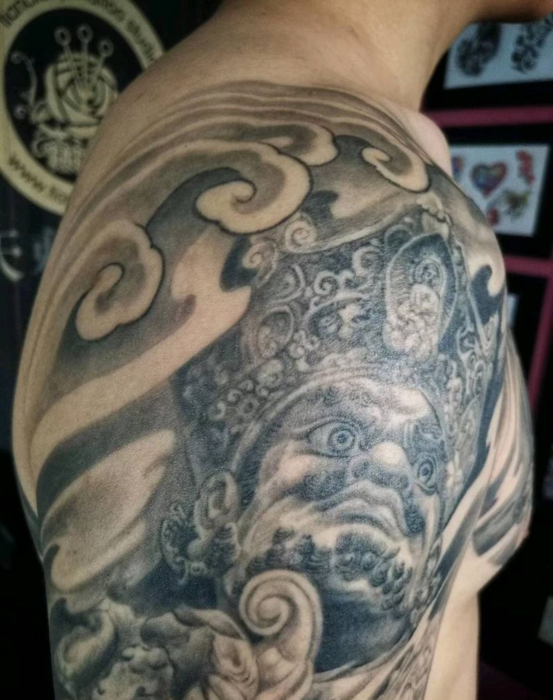 当前位置: 首页 >辽宁省沈阳市纹身店-天刺烙印纹身图案>护世四神纹身图片_胸部手臂新传统老传统人物四大天王纹身图案