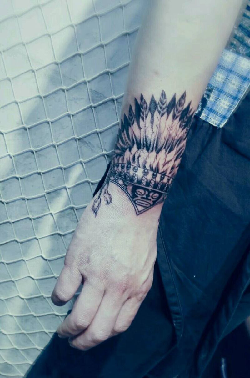 当前位置: 首页 >辽宁省沈阳市纹身店-天刺烙印纹身图案>酋长头饰手环纹身图片