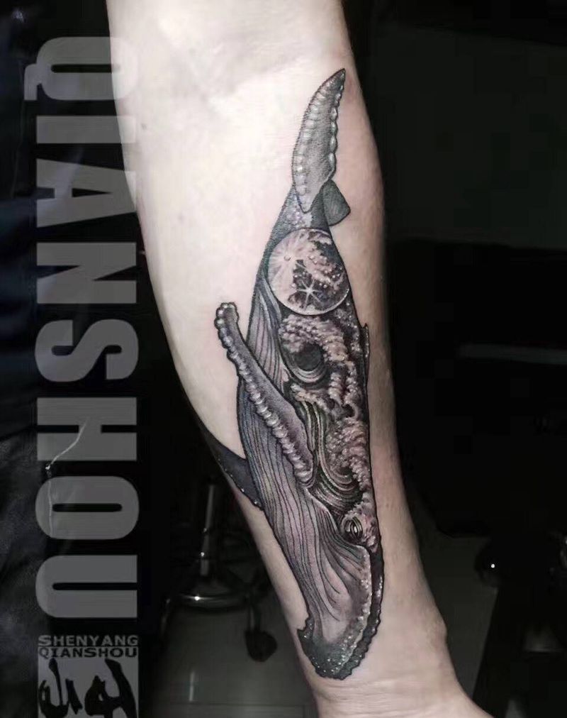 当前位置: 首页 >辽宁省沈阳市纹身店-沈阳千手刺青工作室纹身图案>小臂座头鲸纹身图片