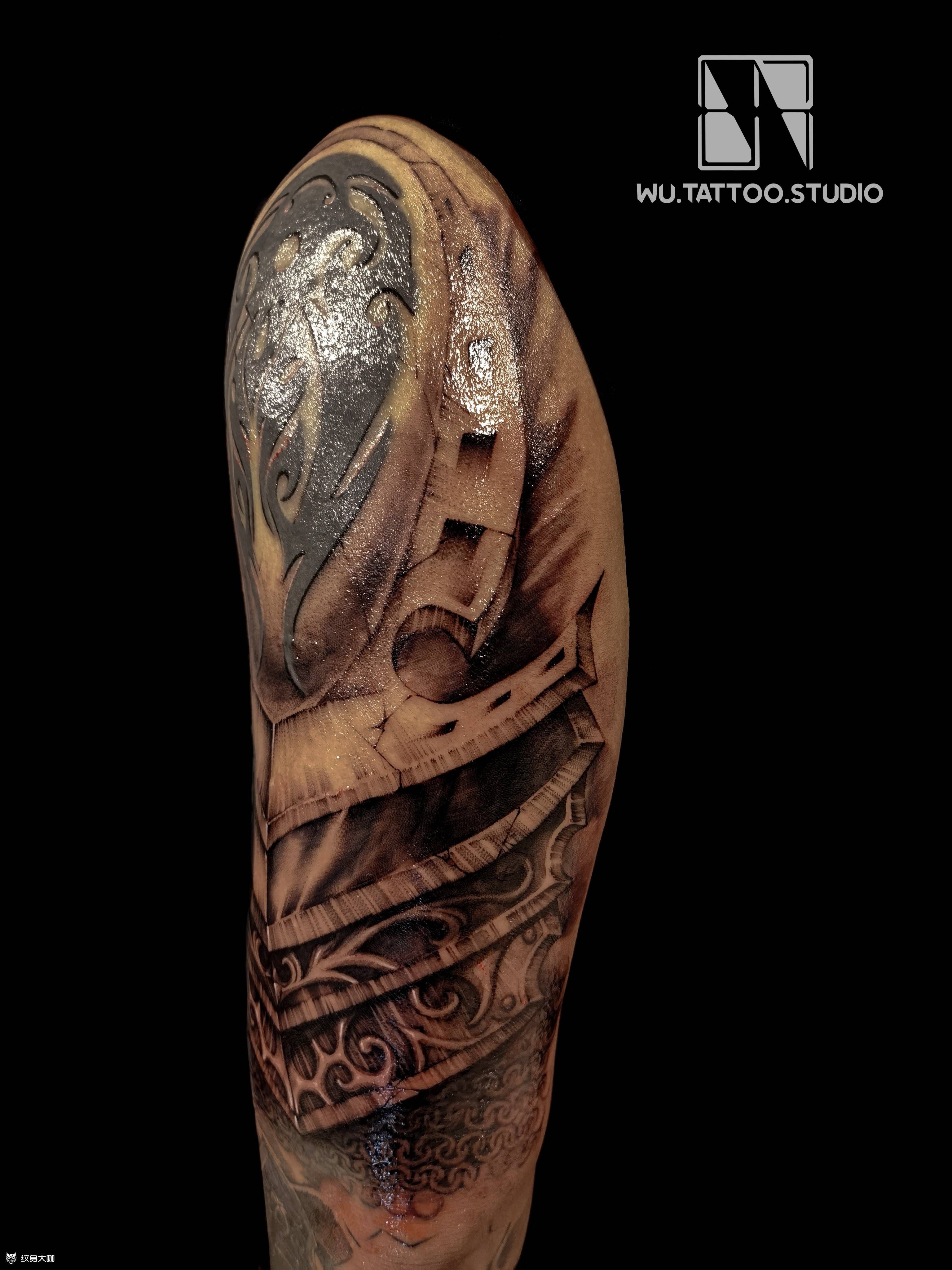 当前位置: 首页 >辽宁省沈阳市纹身店-吾刺青-暗黑文化集合店纹身图案>添加盔甲纹身图片_手臂欧美写实纹身图案