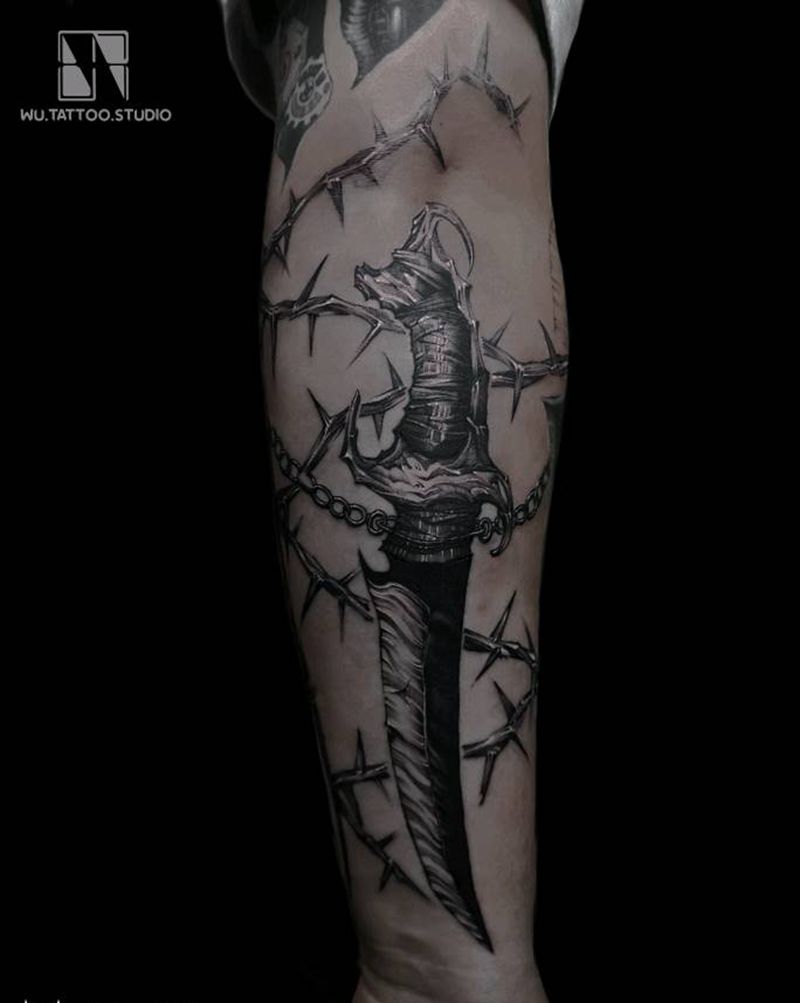 荆棘之刃纹身图片_手臂欧美写实纹身图案
