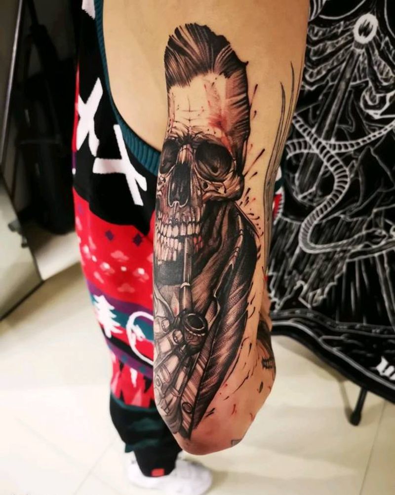 当前位置: 首页 >辽宁省沈阳市纹身店-吾刺青-暗黑文化集合店纹身图案>骷髅绅士纹身图片_欧美写实纹身图案