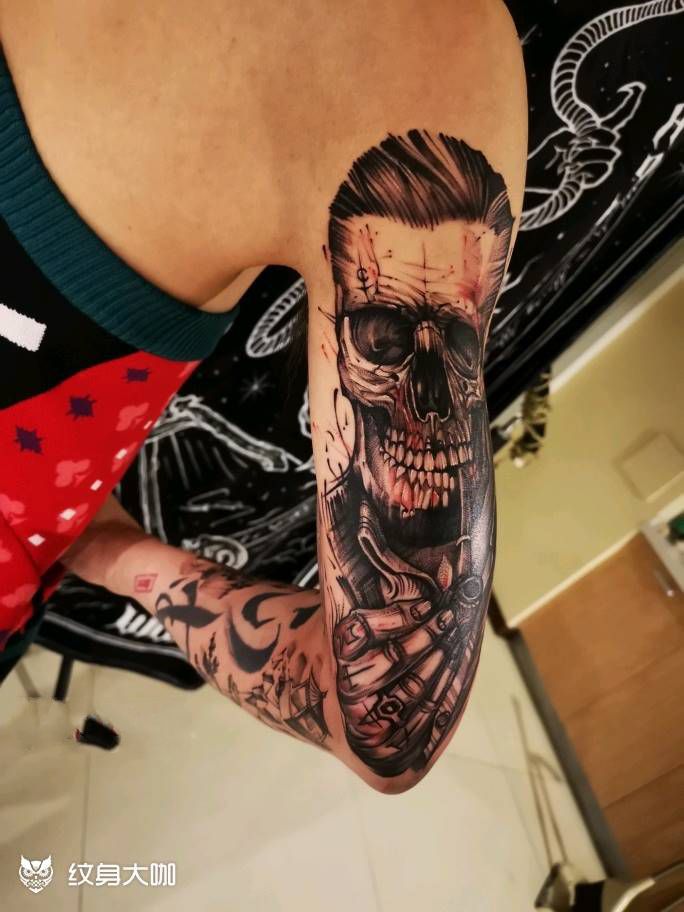 当前位置: 首页 >辽宁省沈阳市纹身店-吾刺青-暗黑文化集合店纹身图案>骷髅绅士纹身图片_欧美写实纹身图案