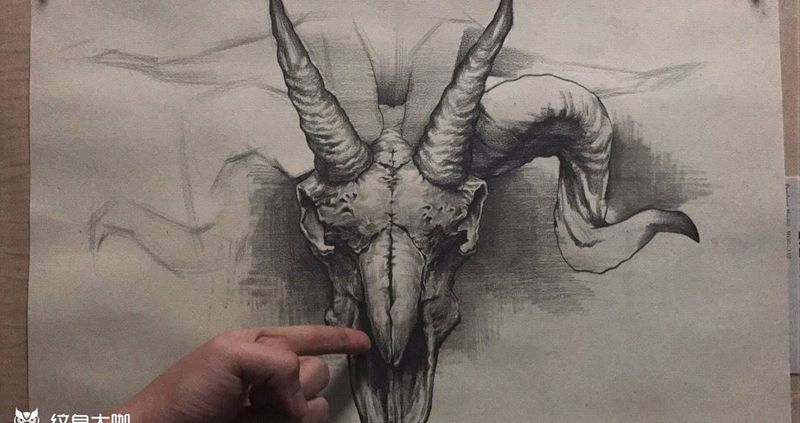 当前位置: 首页 >辽宁省沈阳市纹身店-吾刺青-暗黑文化集合店纹身图案>欧美羊头手稿纹身图片