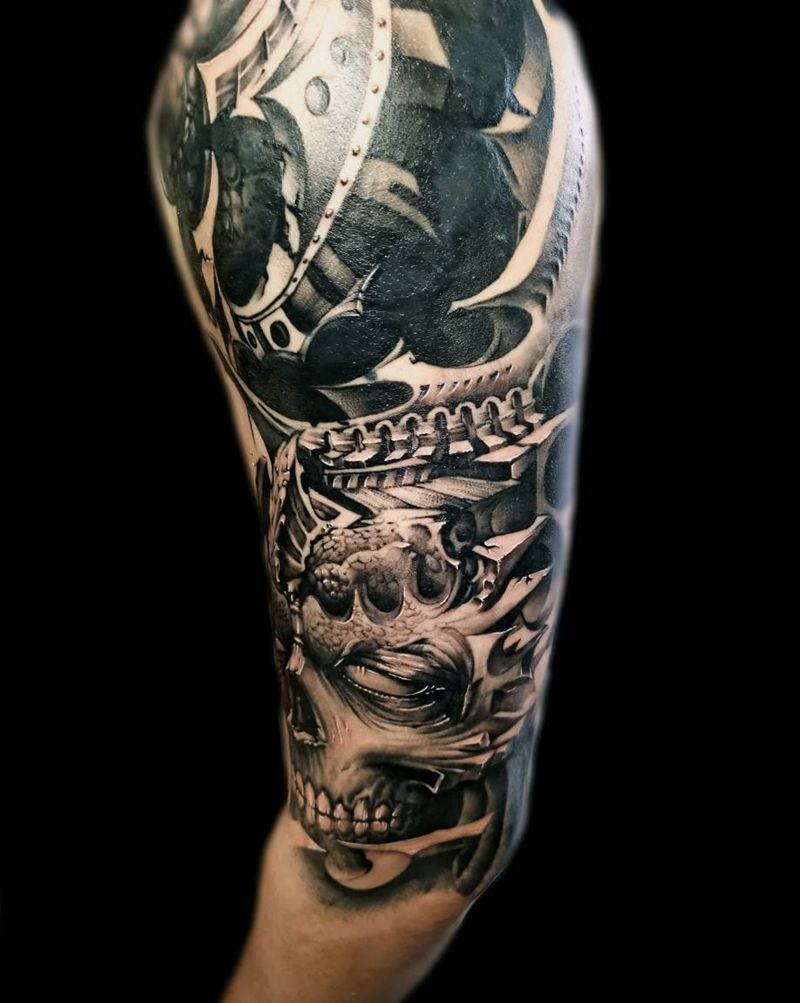 30个小时左右 遮盖生化机械纹身图片_肩部胸部欧美写实纹身图案