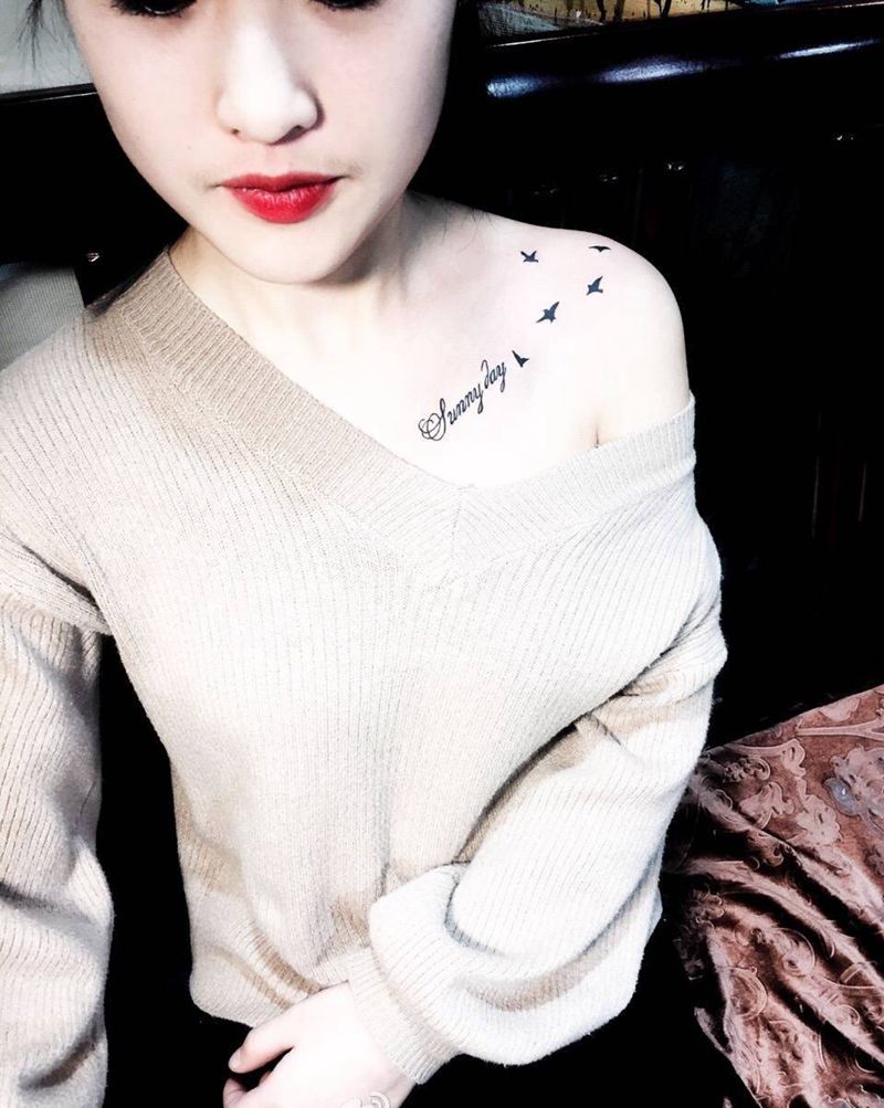 小英文纹身图片_成品肩部胸部腿部传统静物动物图腾原创纹身图案