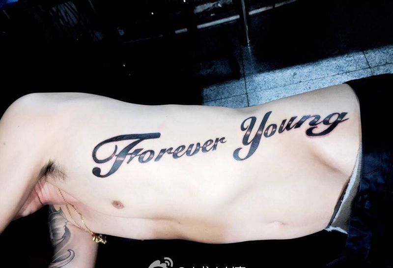 • T关于私处得爱!纹身图片_成品腹部清新字符图腾纹身图案