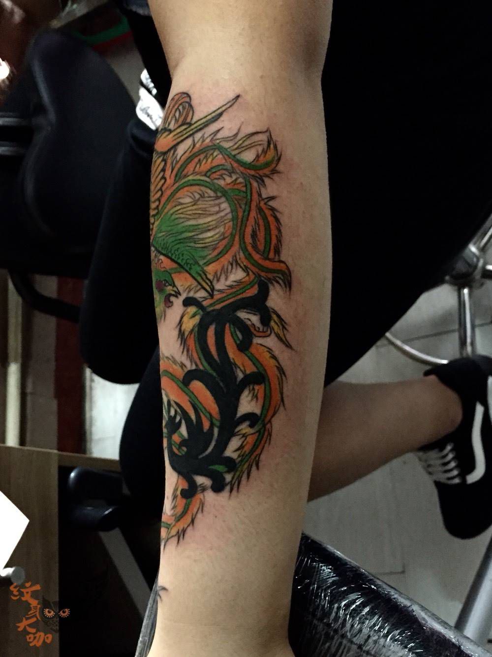 • T网红王老大花腿龙纹身图片_腿部新传统纹身图案
