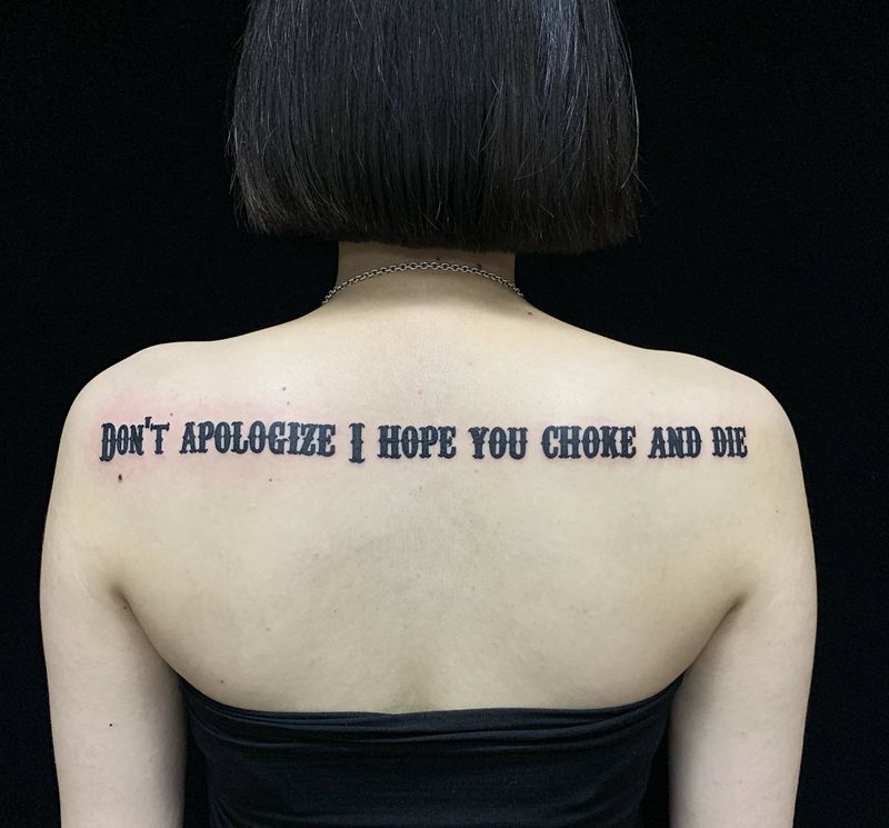 当前位置: 首页 >辽宁省沈阳市纹身店-NE·刺青工作室纹身图案>《英文》纹身图片_背部花体字纹身图案