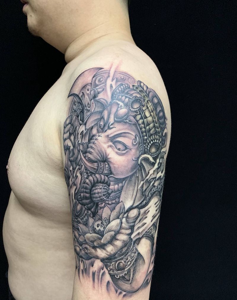 当前位置: 首页 >辽宁省沈阳市纹身店-NE·刺青工作室纹身图案>《象神》纹身图片_手臂新传统纹身图案