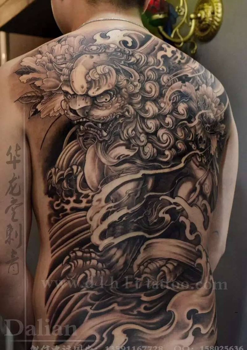 • 黑灰满背纹身图案
