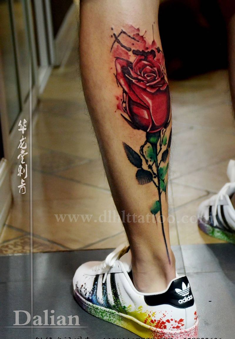 • T网红王老大花腿龙纹身图片_腿部新传统纹身图案