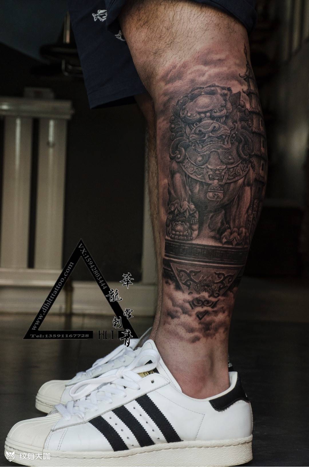 • T网红王老大花腿龙纹身图片_腿部新传统纹身图案