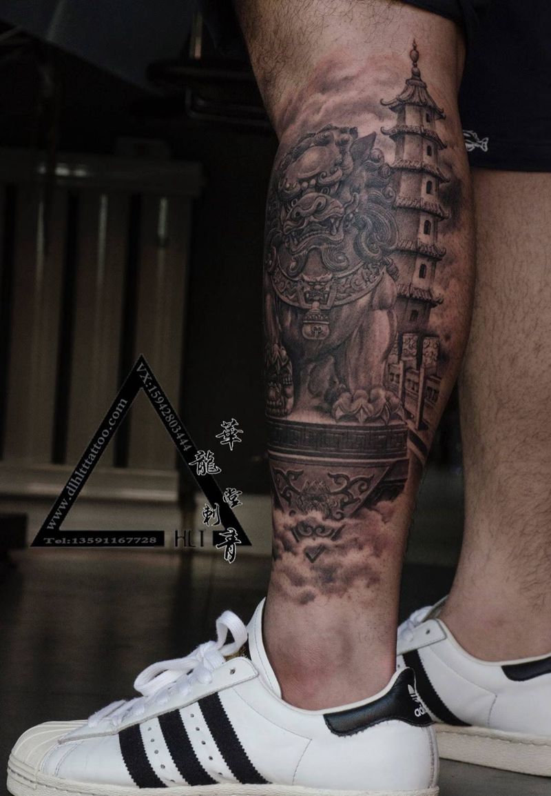 • T网红王老大花腿龙纹身图片_腿部新传统纹身图案