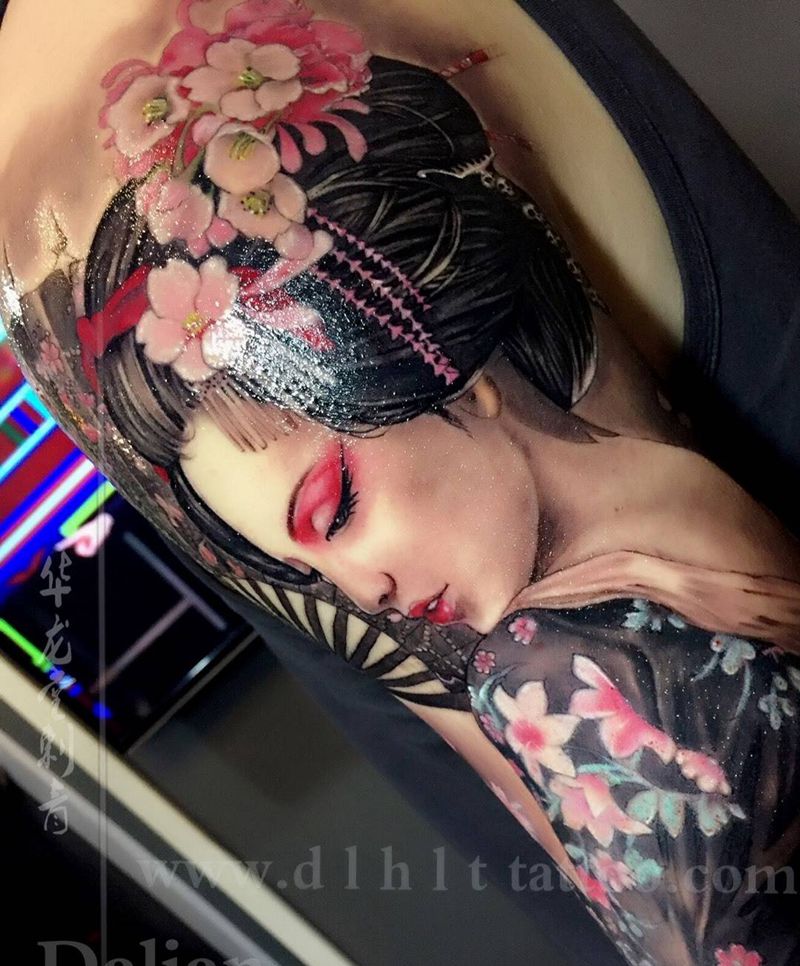 当前位置: 首页 >辽宁省大连市纹身店-大连华龙堂刺青纹身图案>艺妓…纹身图片_成品手臂欧美肖像写实人物原创纹身图案