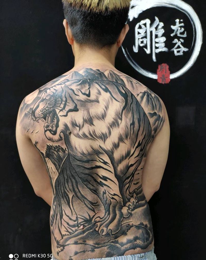 当前位置: 首页 >辽宁省沈阳市纹身店-沈阳雕龙谷刺青纹身图案>雕龙谷刺青上山虎纹身图片_老传统纹身图案