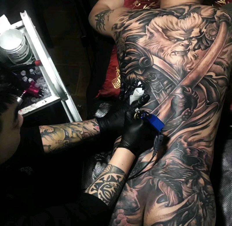 黑灰满背纹身图案