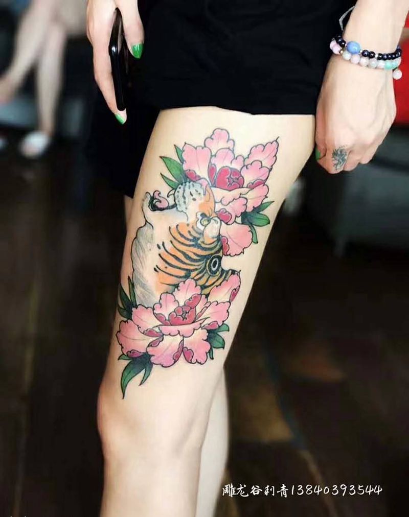 • T网红王老大花腿龙纹身图片_腿部新传统纹身图案