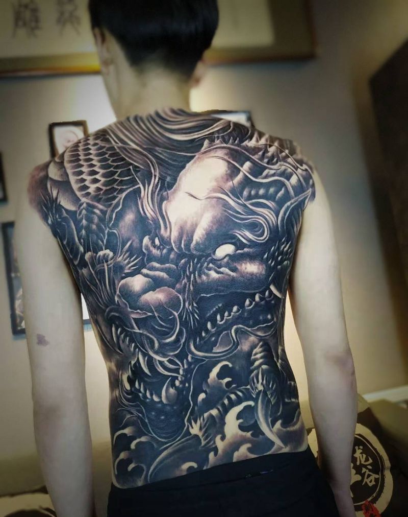 当前位置: 首页 >辽宁省沈阳市纹身店-沈阳雕龙谷刺青纹身图案>满背大龙纹身图片_背部欧美写实新传统纹身图案