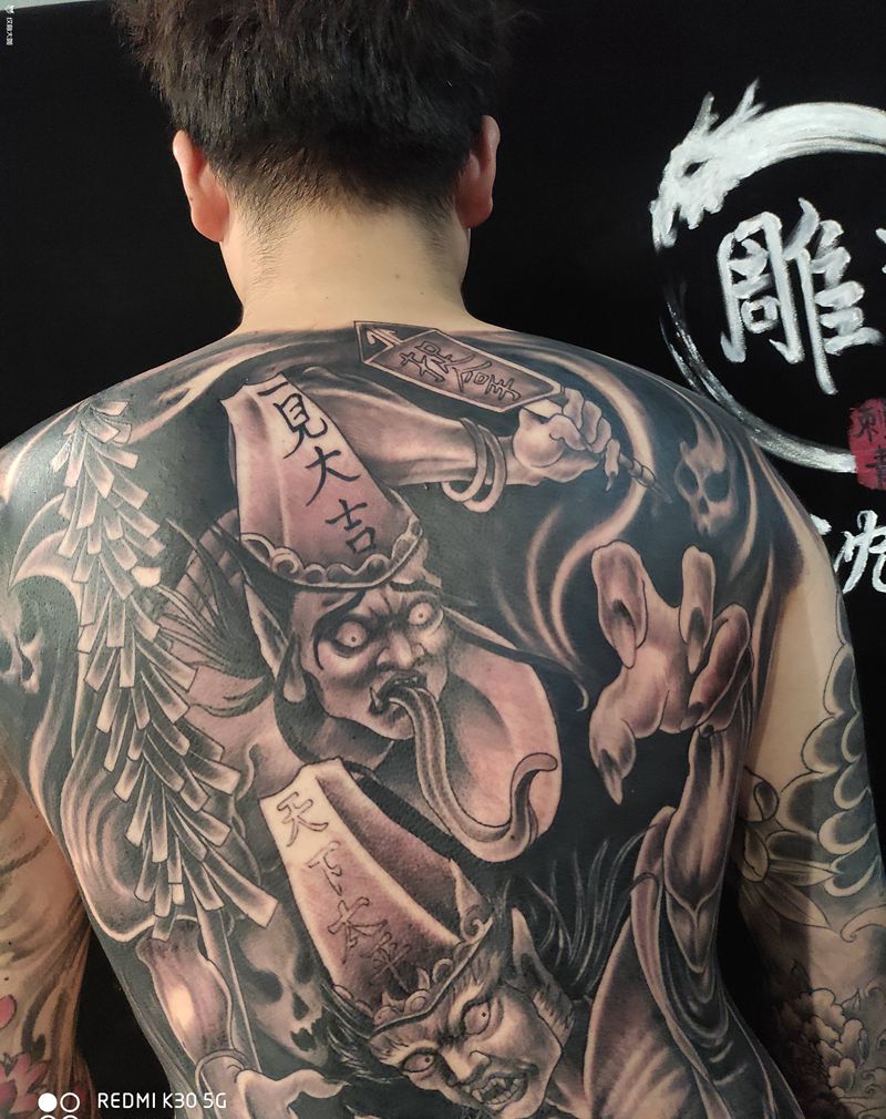 当前位置: 首页 >辽宁省沈阳市纹身店-沈阳雕龙谷刺青纹身图案>黑白无常纹身图片_背部新传统纹身图案