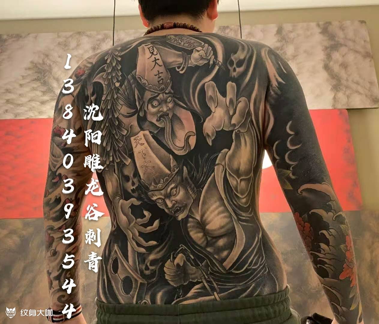 黑灰满背纹身图案