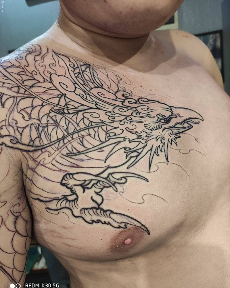 当前位置: 首页 >辽宁省沈阳市纹身店-沈阳雕龙谷刺青纹身图案>过肩凤凰线条之美纹身图片_手臂新传统纹身图案