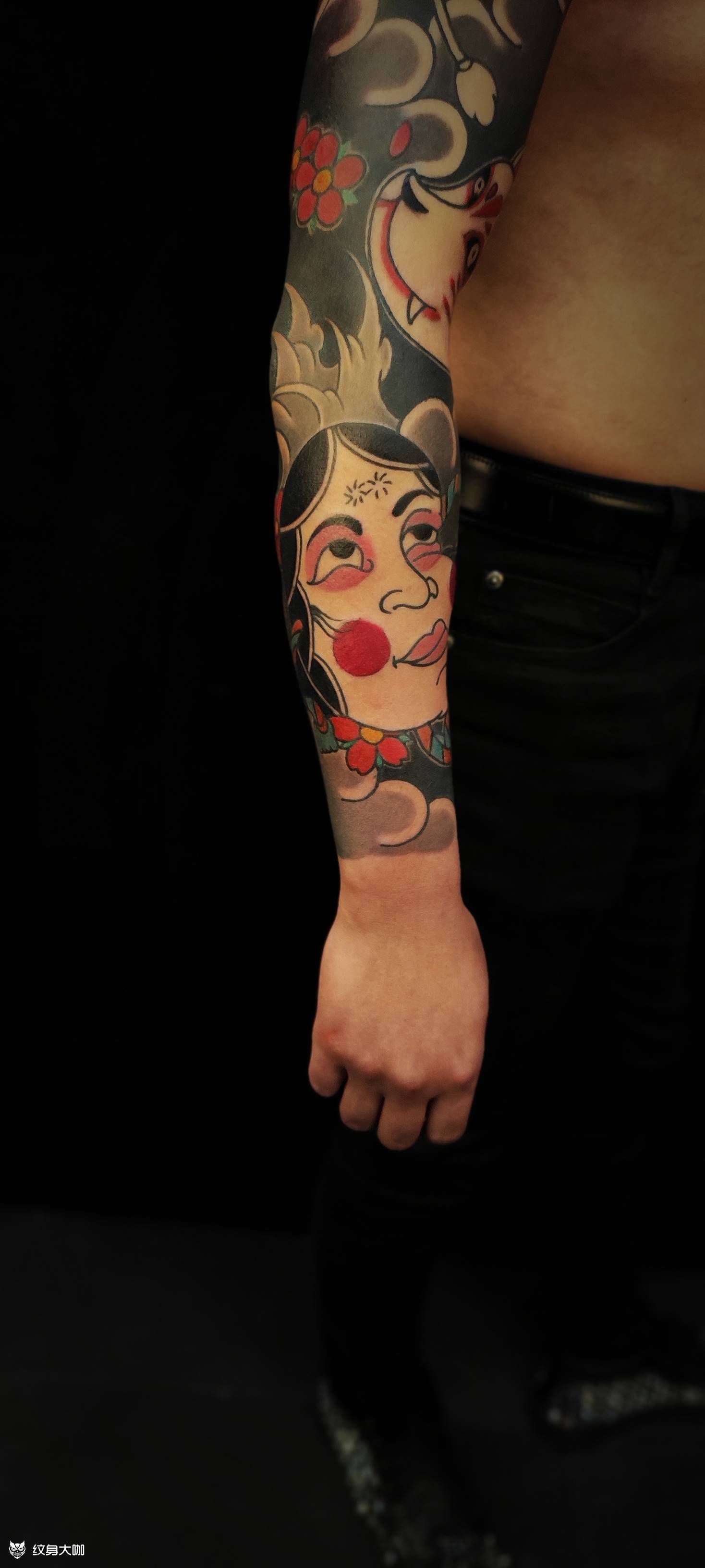 老传统花臂遮盖纹身图片_手臂老传统纹身图案