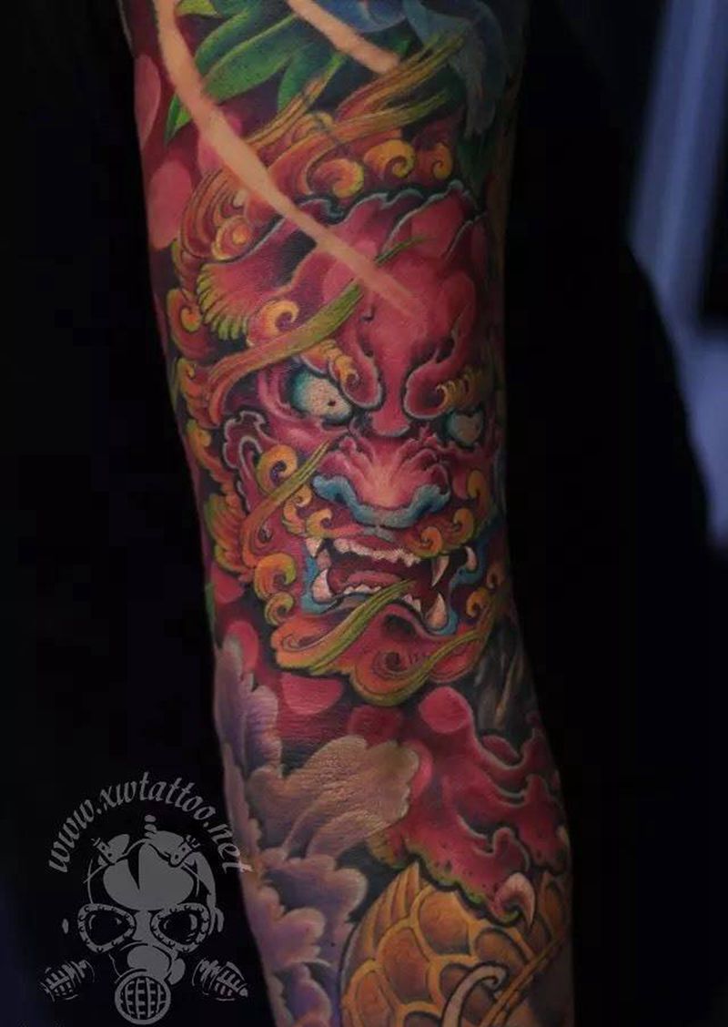 当前位置: 首页 >辽宁省大连市纹身店-大连小伟刺青纹身有限公司纹身图案>唐狮子嘎巴拉花臂纹身图片_小伟刺青原创手臂传统纹身图案