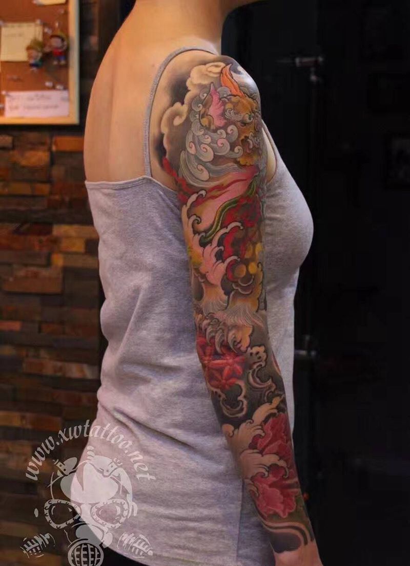 当前位置: 首页 >辽宁省大连市纹身店-大连小伟刺青纹身有限公司纹身图案>唐狮子花臂纹身图片_成品手臂传统原创小伟刺青纹身图案