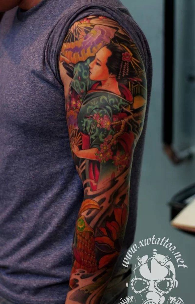 当前位置: 首页 >辽宁省大连市纹身店-大连小伟刺青纹身有限公司纹身图案>艺妓鬼武士七分袖纹身图片_小伟刺青手臂传统原创纹身图案
