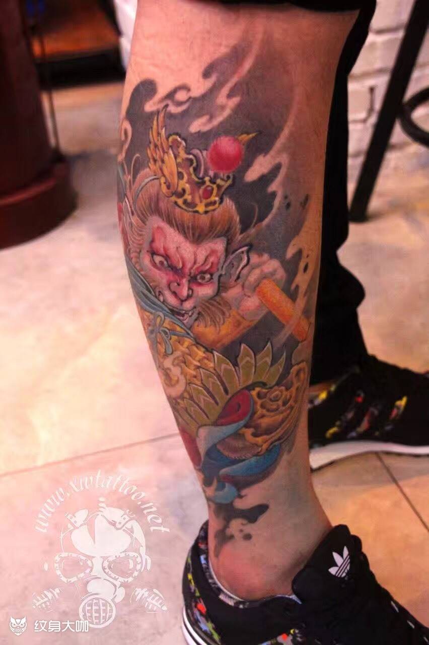 彩色悟空纹身图片_成品腿部传统原创小伟刺青纹身图案