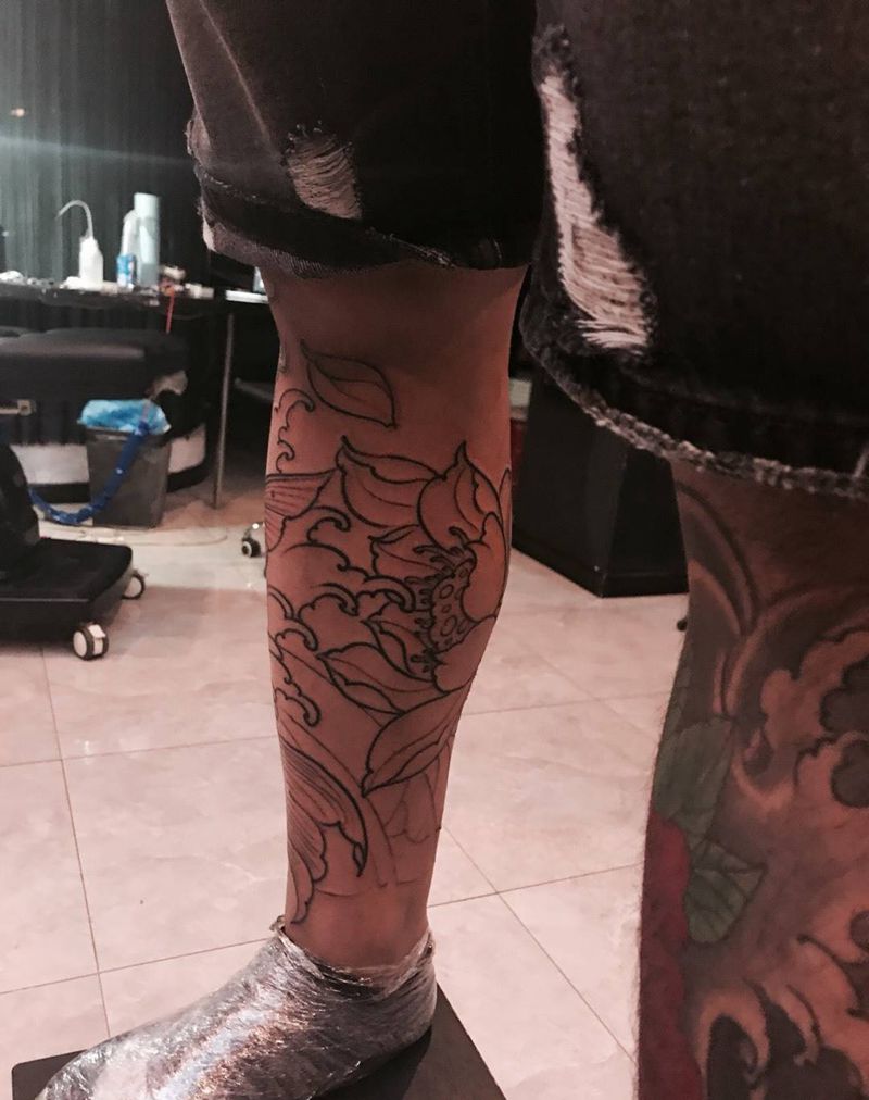 鲤鱼包小腿(未完成)纹身图片_小伟刺青动物植物传统腿部纹身图案