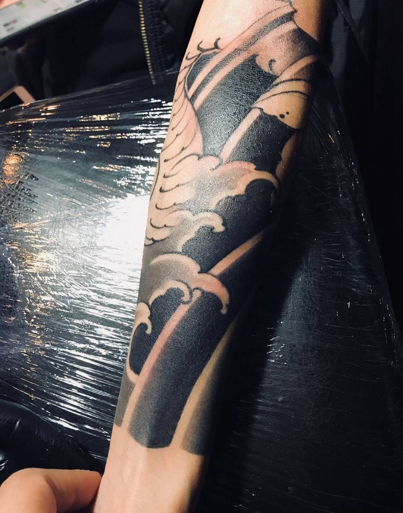 黑得发亮纹身图片_小伟刺青传统手臂纹身图案