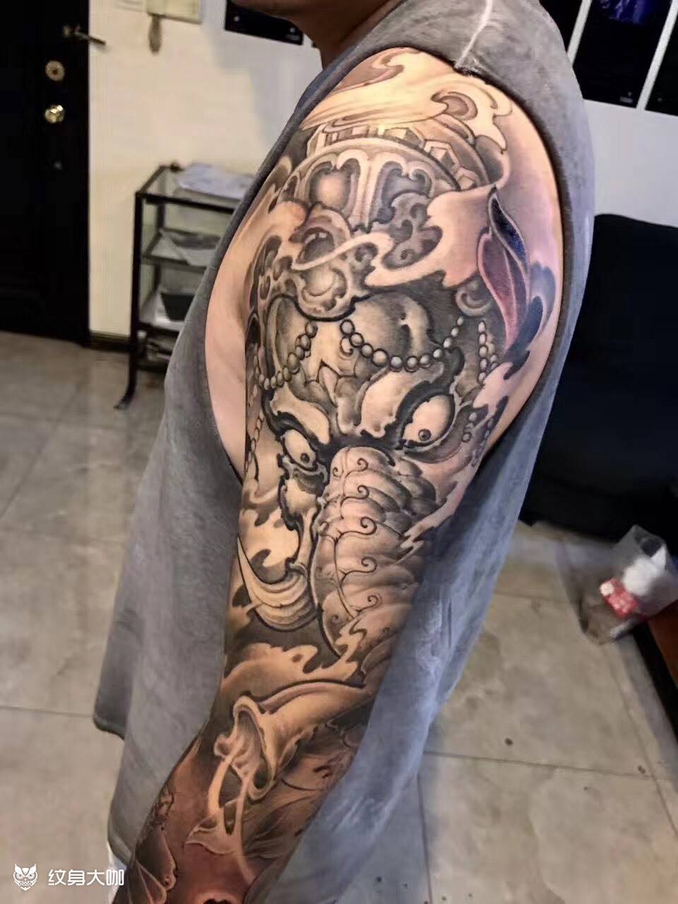 当前位置: 首页 >辽宁省大连市纹身店-大连小伟刺青纹身有限公司纹身图案>象神花臂纹身图片_小伟刺青动物传统手臂纹身图案