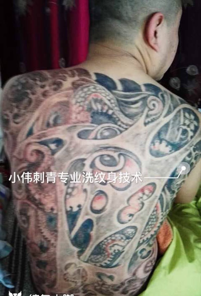 黑灰满背纹身图案