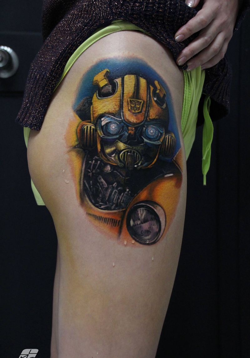 当前位置: 首页 >辽宁省大连市纹身店-大连小伟刺青纹身有限公司纹身图案>大黄蜂纹身图片_腿部小伟刺青彩色写实纹身图案