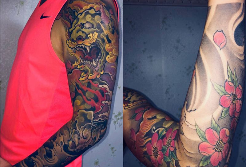 当前位置: 首页 >辽宁省大连市纹身店-大连小伟刺青纹身有限公司纹身图案>唐狮花臂纹身图片_手臂新传统小伟刺青纹身图案