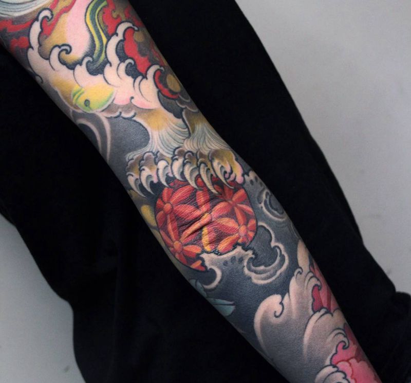当前位置: 首页 >辽宁省大连市纹身店-大连小伟刺青纹身有限公司纹身图案>完全恢复后纹身图片_手臂新传统小伟刺青纹身图案