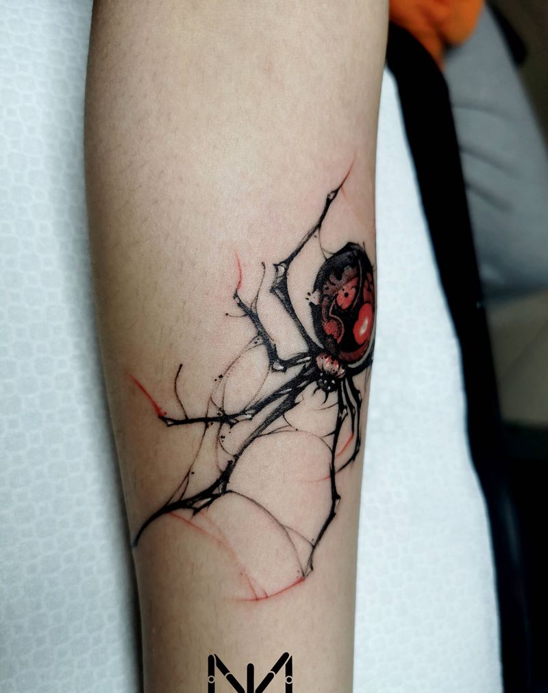 当前位置: 首页 >辽宁省沈阳市纹身店-吾刺青-暗黑文化集合店纹身图案>红蜘蛛原创纹身图片_手臂腿部点刺欧美写实纹身图案