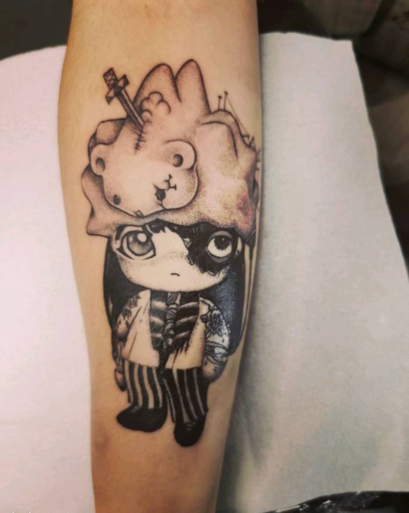 当前位置: 首页 >辽宁省沈阳市纹身店-吾刺青-暗黑文化集合店纹身图案>POPMART纹身纹身图片_手臂腿部点刺纹身图案