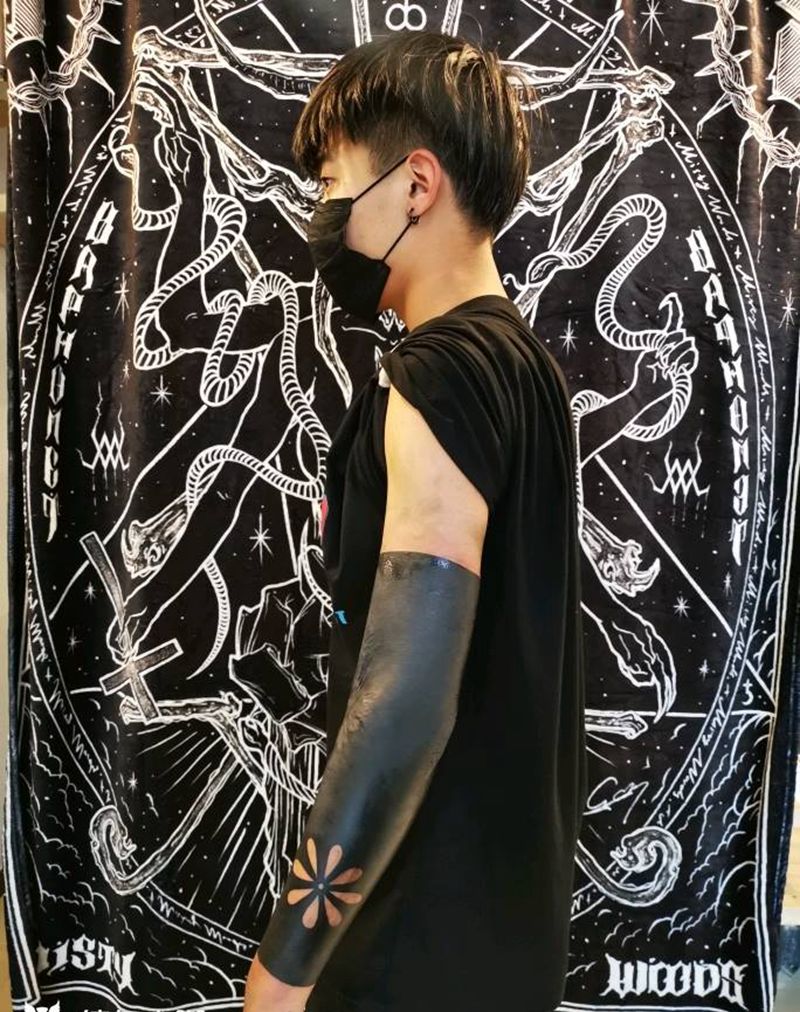 当前位置: 首页 >辽宁省沈阳市纹身店-吾刺青-暗黑文化集合店纹身图案>不听劝的黑臂少年纹身图片_手臂图腾纹身图案