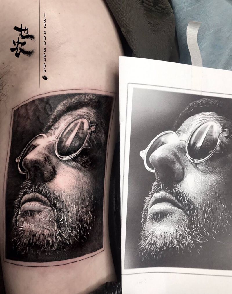 《这个杀手不太冷》让·雷诺纹身图片_手臂背部欧美写实新传统肖像花臂杀手不太冷纹身图案