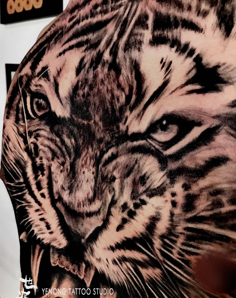 当前位置: 首页 >辽宁省沈阳市纹身店-也农刺青纹身图案>定制设计写实-虎-骷髅纹身图片_胸部背部欧美写实New School老虎骷髅满背纹身图案