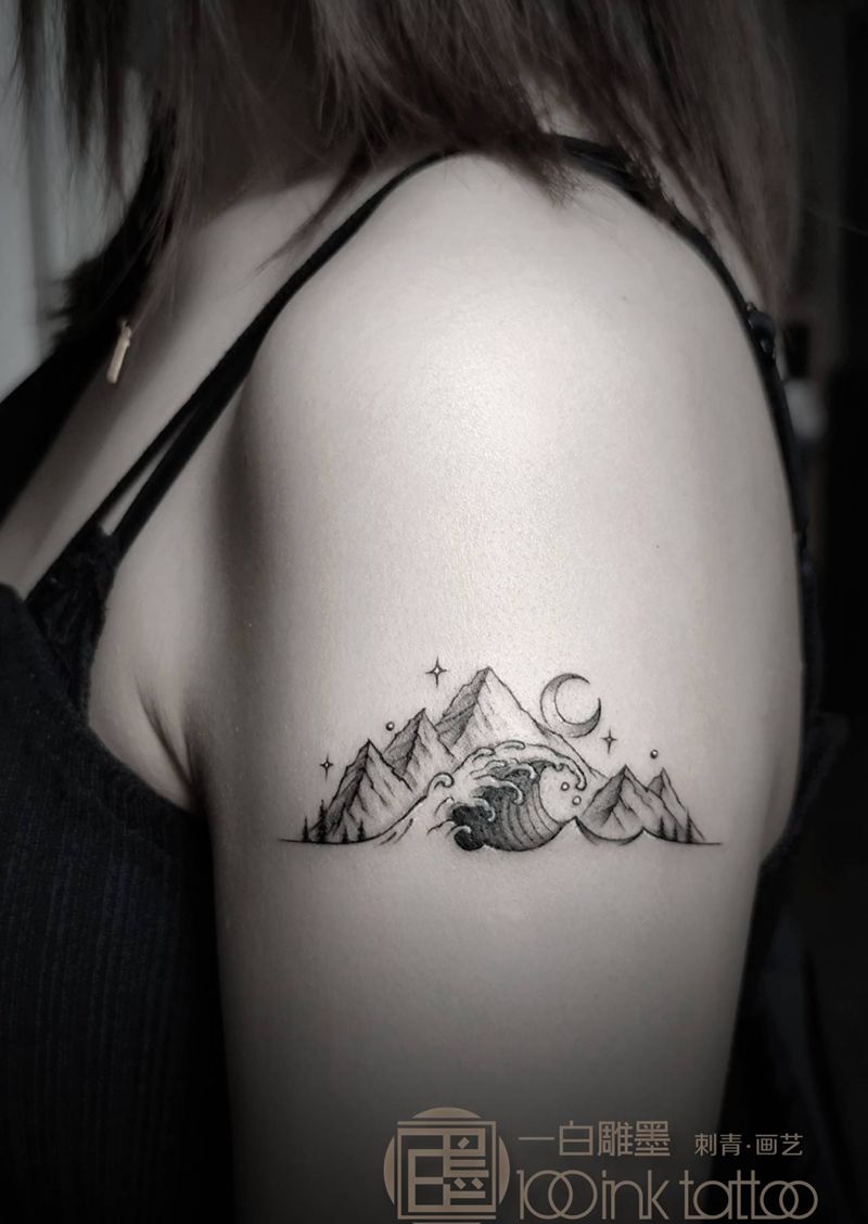 当前位置: 首页 >辽宁省大连市纹身店-一白雕墨 刺青画艺纹身图案>山海纹身图片_手臂点刺山海纹身图案