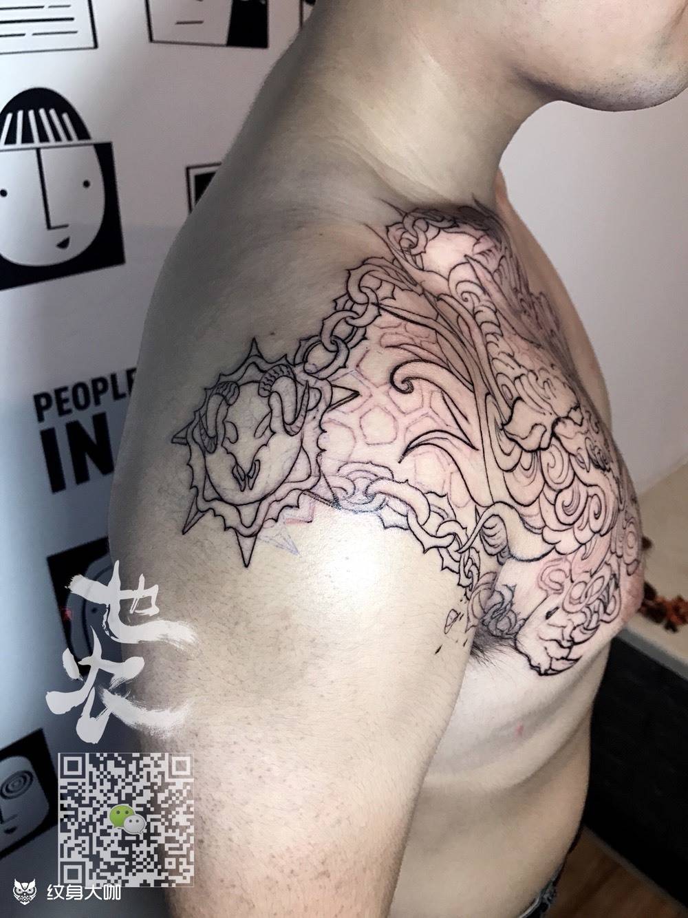 当前位置: 首页 >辽宁省沈阳市纹身店-也农刺青纹身图案>▪️挣脱枷锁-半甲唐狮▪️纹身图片_成品肩部胸部手臂传统动物鬼神也农刺青原创习俗纹身图案