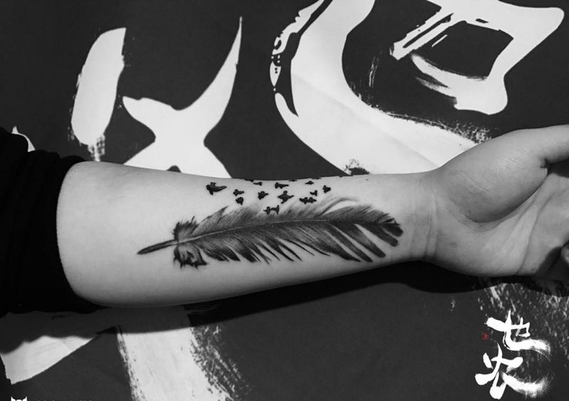 当前位置: 首页 >辽宁省沈阳市纹身店-也农刺青纹身图案>【定制写实羽毛】纹身图片_成品手稿手臂写实欧美静物动物也农刺青纹身图案
