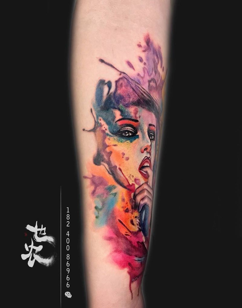 当前位置: 首页 >辽宁省沈阳市纹身店-也农刺青纹身图案>【吮指原味】纹身图片_手臂腹部欧美写实水彩欧美人像设计纹身图案