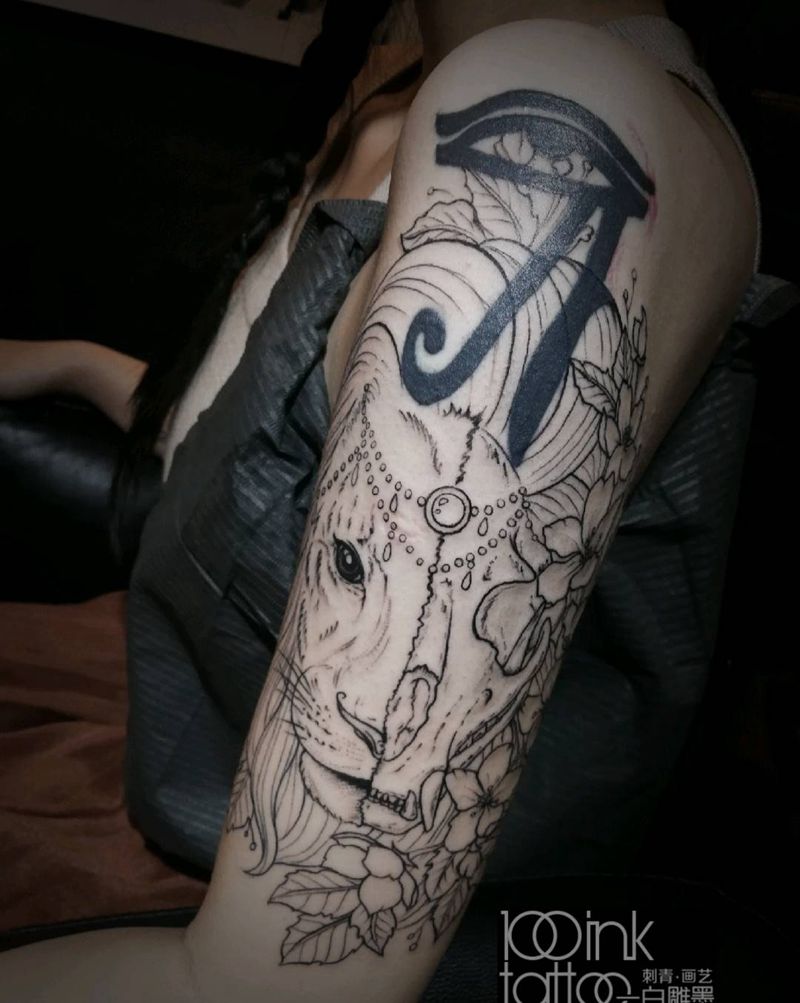 清新遮盖图腾纹身图片_手臂狮子花纹身图案