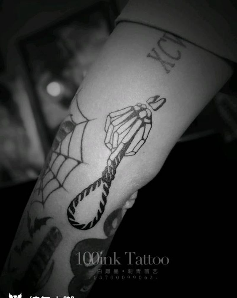 当前位置: 首页 >辽宁省大连市纹身店-一白雕墨 刺青画艺纹身图案>old school接图纹身图片_手臂Old School骷髅手纹身图案